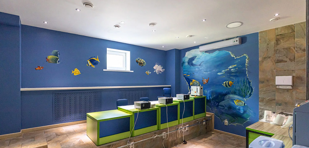 Оздоровительный центр «Малыш». В центре есть родительская комната, воспитатель, который следит за детьми и множество развлечений.